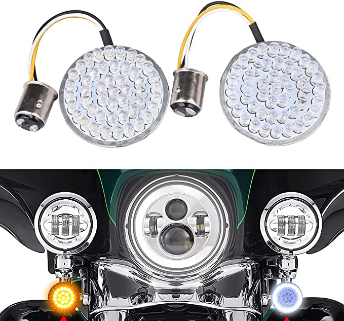2 Inches 1157 LED Turn Signal Light Bulb Indicators for Harley Touring Sportster 14-16 17 Softail 11-17 Dyna 12-17, Yellow Light+ White Light(Pack of 2)